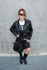 Chiodo over effetto pelle con tasche, chiusura frontale con zip e cintura.