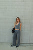 Pantalone tailored fit wide leg in tessuto gessato. chiusura con bottoni