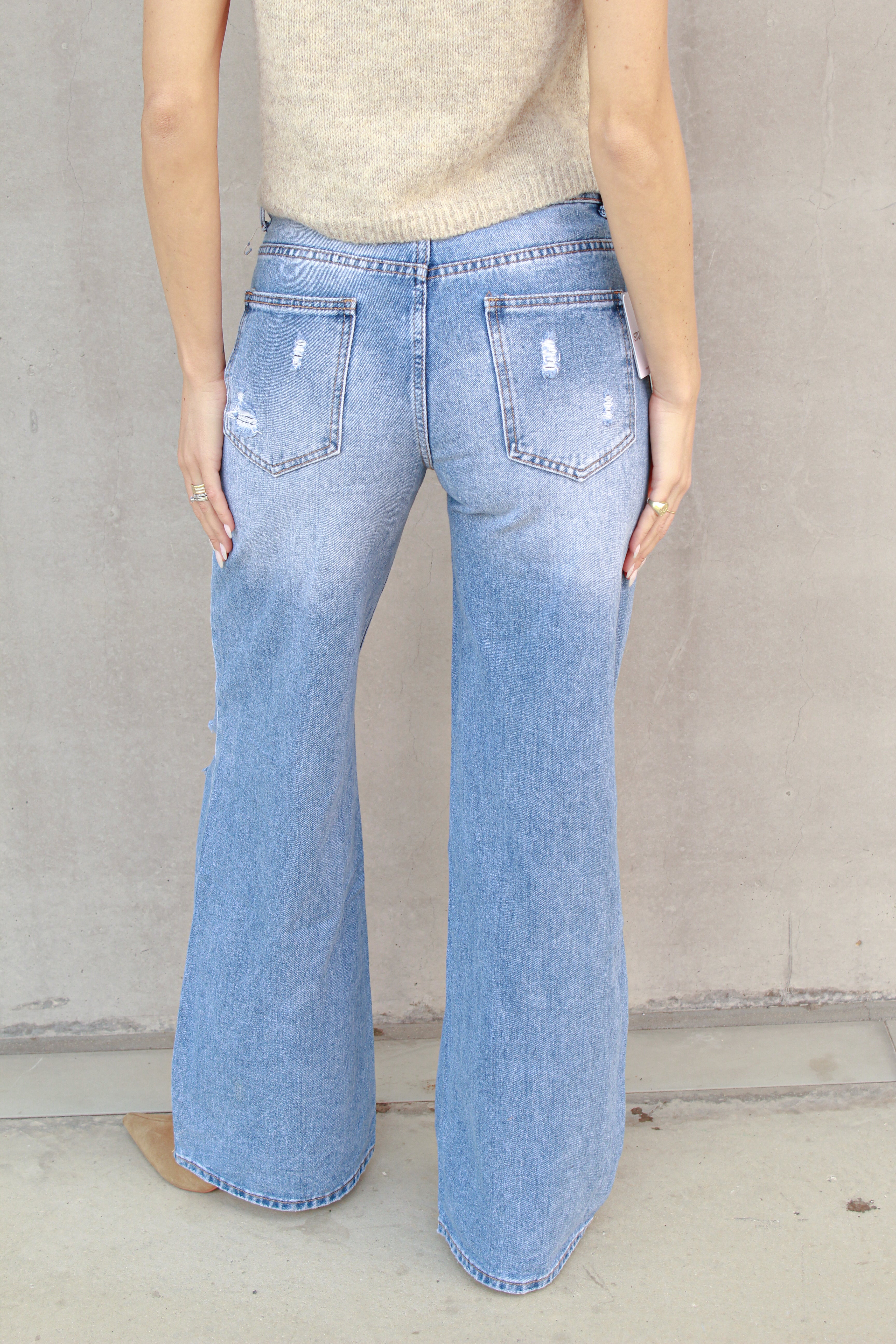 Jeans wide leg con vita regolare, chiusura frontale con bottoni e zip, con tasche.